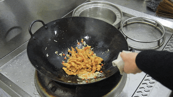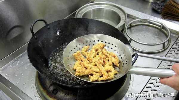 排条捞出后,把油温升高到6成热,然后把刚捞出的排条再次入锅,快速复炸30秒,让排条更加酥脆。等排条炸成金黄色时,捞出控油。