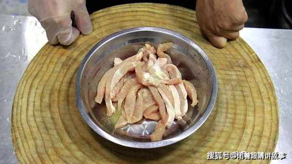 准备猪大排一块(也可以用瘦肉代替),先切成1厘米左右的厚片,再改刀切成长条。切好之后,加入鸡粉1克、食盐2克、胡椒粉1克,再少倒一点料酒去腥,抓拌几下让肉条吸收料汁入味。