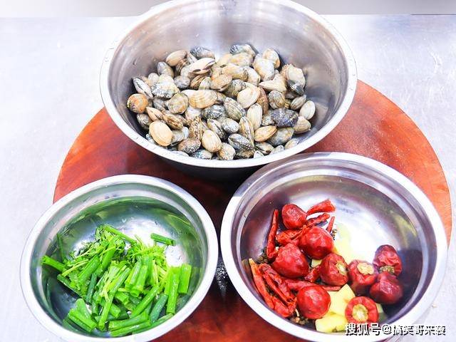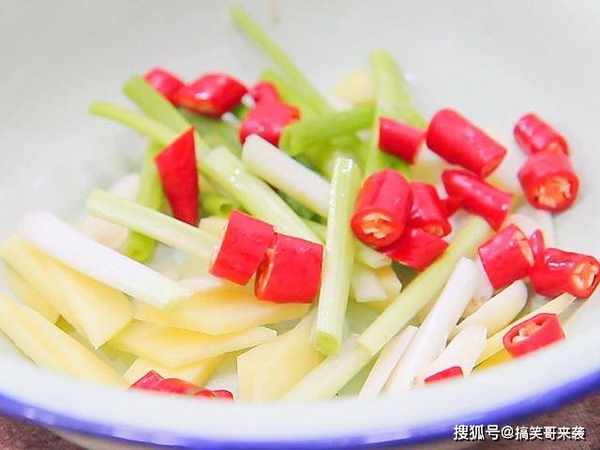 新鲜的蛏子500克洗干净以后,泡在清水中加入盐和食用油,浸泡20分钟;生姜切成菱形片;大蒜切成薄片;小葱切成段;小米椒切成圈。