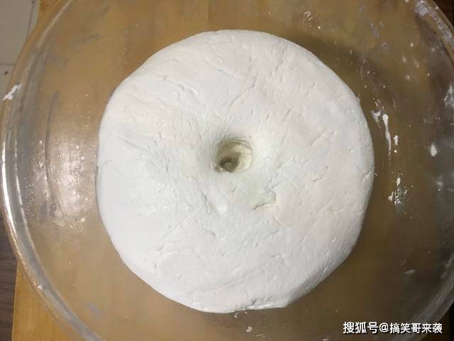 4、等时间到了,可以打开看一看,面团明显比原来大了不少,糯米粉与面粉,因为延展性不同,所以发酵后的面团,不会有明显增大,属于正常情况。