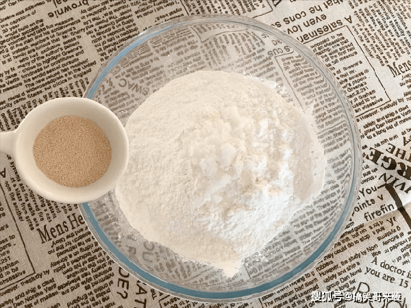 1、准备所有的食材,300克糯米粉,15克绵白糖,3克酵母粉,全部倒入碗中,用筷子顺时针搅拌均匀,这个配方能制成10-12个炸糕。