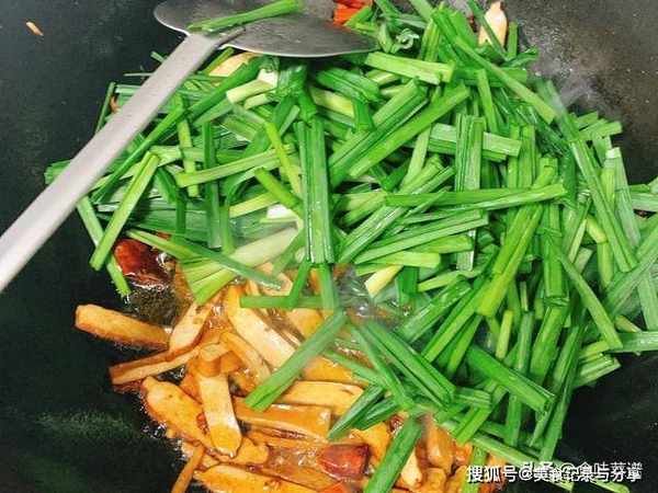4、按照这个方式炒的韭菜,鲜香美味,营养丰富,色香味俱全,有卤干的搭配,香味格外的突出,如果有老人孩子,可以不放辣椒,当然,有点辣味会更加好吃。