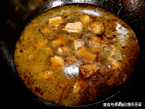 3、按照个人的口味,依次加入生抽、老抽、食盐、鸡精、蚝油和白糖,翻炒融化后,加入足量的开水,水位要没过牛肉。
