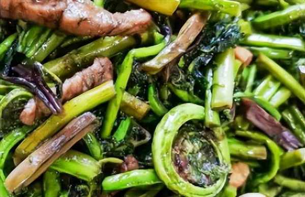 猴腿菜洗净切成段,五花肉切成片后放进锅里煸炒出油,调盐及酱油入味,然后倒进猴腿菜翻炒入味即可。口感脆嫩。