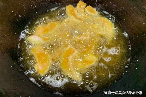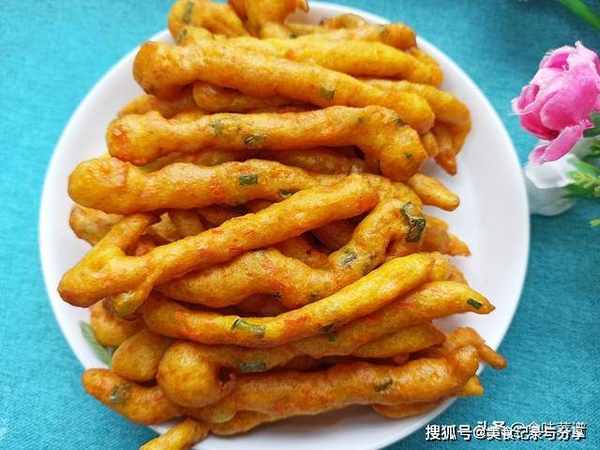 5、像这个样子就差不多,表面脆脆的,炸久了容易断开,这一盘要分成3个批次炸,千万别一次性倒入,一粘就完了。