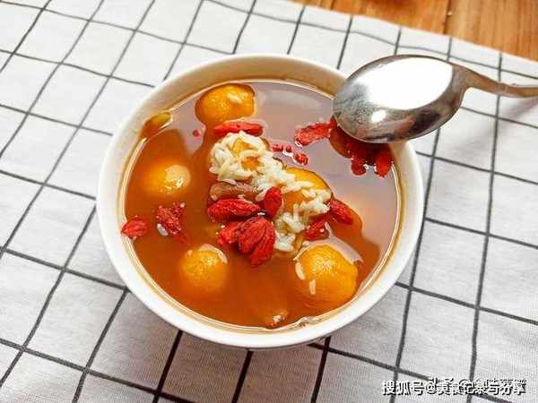 10、装入带米酒的碗中,放入枸杞,搅拌均匀。
