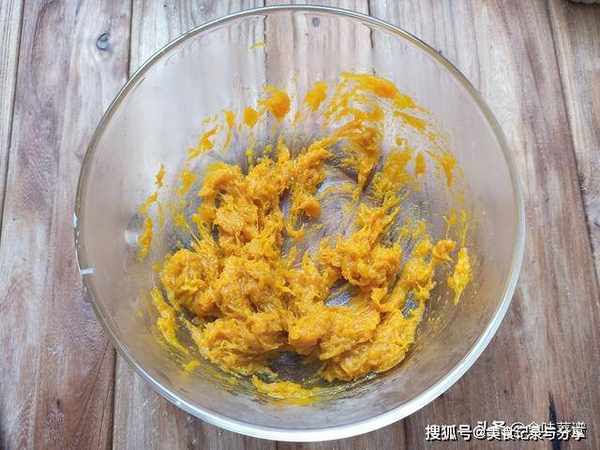 3、蒸熟之后取出,捣成南瓜泥,放入碗中备用。