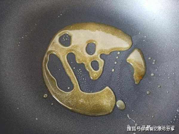 2、苹果炒成糖馅,这一步也非常简单,锅中先加入两勺白糖,小火慢慢熬制融化,等渐变成焦糖色。