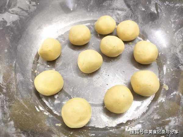 6、等揉完之后,再揪成大小均匀的面剂子,搓成圆球之后,再按成小圆饼的形状。