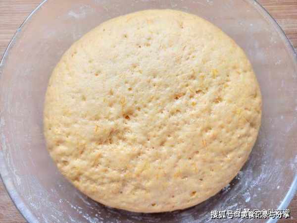 6、面已经发好了,可以明显看到气孔,取出先揉搓排气,揉到醒发之前的大小,记得撒些干面粉,防止粘连。