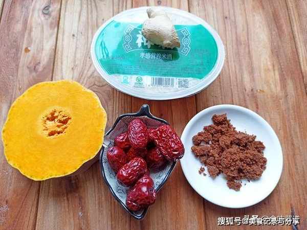 1、准备适量南瓜、红糖、姜、红枣、米酒。