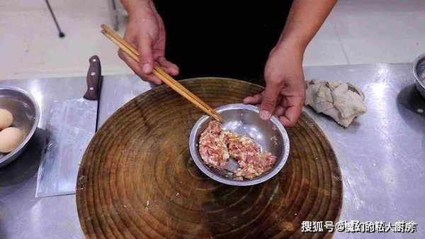 1.首先,我们准备一小块五花肉剁成肉末,大葱拍散切成葱末,生姜拍散切成姜末,和肉末放在一起,加入食盐1克,白糖少许提鲜,倒入一点料酒去腥,加入蚝油5克增鲜,用筷子搅拌均匀,给肉末码味。