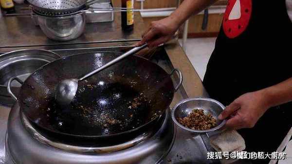4.下面,我们把肉末炒一下,锅内烧油,充分滑锅以后,倒出热油加入凉油,把肉末倒入锅中,快速炒散,炒出肉末中的水分,肉末炒香以后,加入一点老抽上色,翻炒均匀以后盛出来备用。