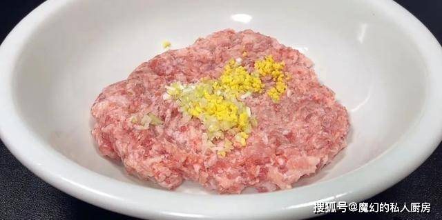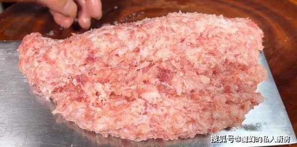1.准备一块有肥有瘦的猪肉,洗净后用刀剁成肉末。