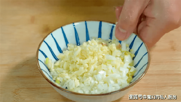 6.接着再切一些配料,葱姜切末,装入碗中备用。