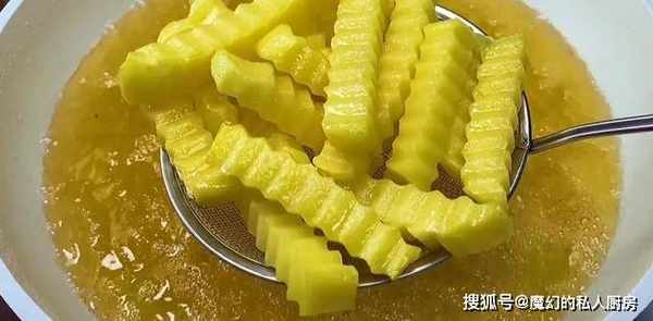3.起锅烧油,倒入土豆条下去油炸,5分钟左右即可出锅。