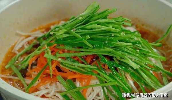 4.将油水沥干,倒入碗中,放葱花、蒜末、小米辣、孜然粉、喜欢吃辣的再多放点辣椒面。
