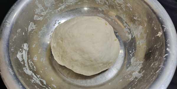 第一步:准备面粉500克,加入食盐3克,而后用温水250克温水和面,将面团揉的光滑有筋,盖好放一边松弛15分钟。