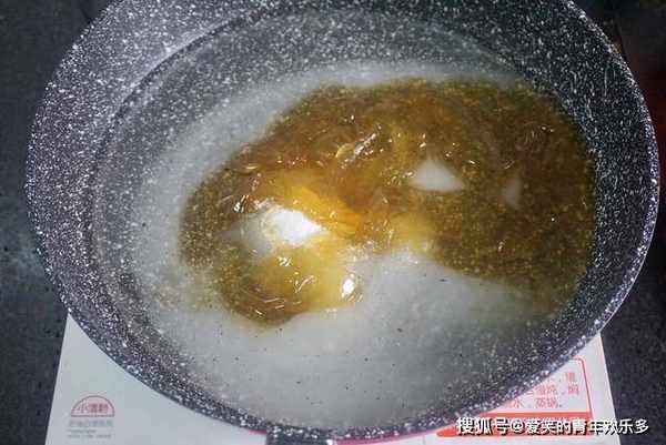 1、锅中先倒入30克清水,250克麦芽糖,30克白糖,熬制成糖浆,前期不要搅动,等全部融化以后,再开始搅动,用筷子试一试,熬成能拉丝的状态即可,把火力改成最小火,能保温即可。