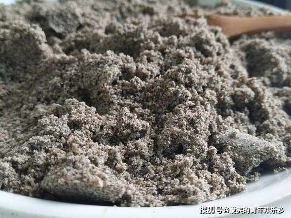 3、黑芝麻与全麦粉混合好的样子,既有芝麻的醇厚香味,又有粗粮的营养,一举两得,每天早餐冲服,一碗开水,舀入3勺即可。