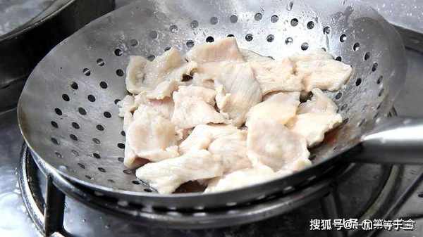 里脊肉片焯水二十秒钟即可,焯水的时间长了,口感就不好了