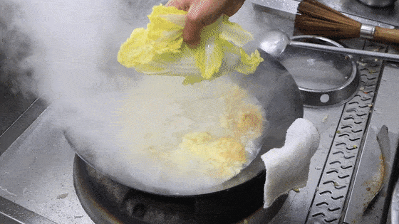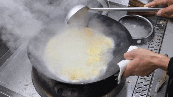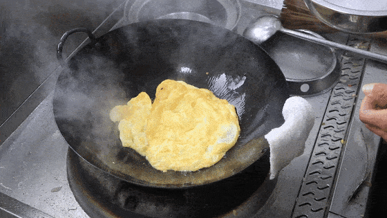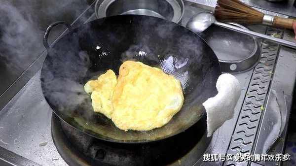 油温要高一点,油面冒青烟时,倒入蛋液