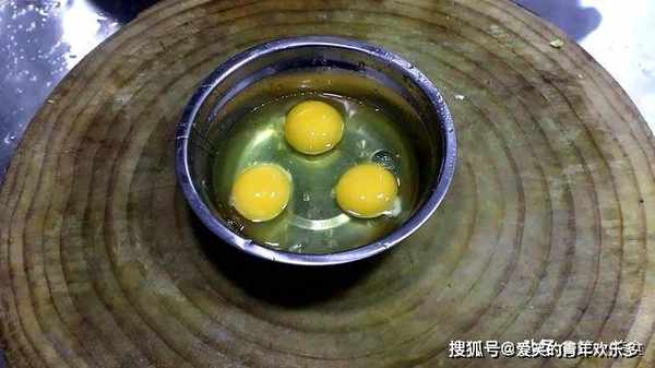 碗中打入三个鸡蛋