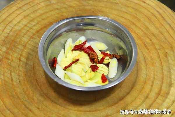3.准备生姜一块切成片,葱白一段切成马蹄片,大蒜一小把拍散,香味更容易被激发,全部放在同一个盆中,再加入干辣椒几粒,八角2粒备用。
