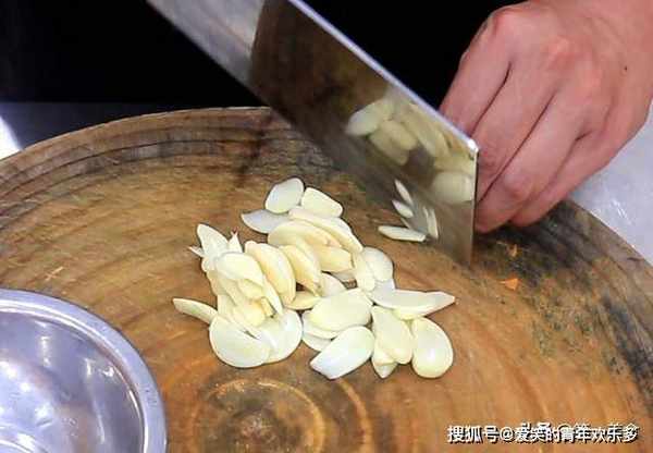 3.准备大蒜一小把,切成片备用。