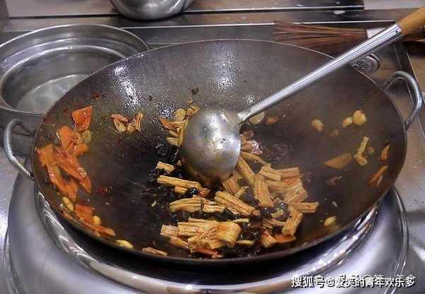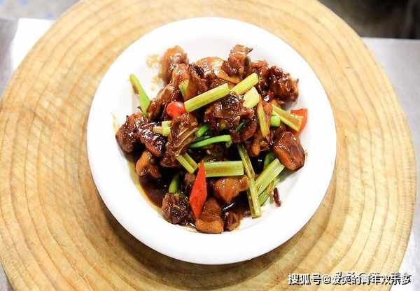 5.锅内烧油,放入一小把冰糖不停地搅拌,让冰糖快速融化,糖汁变成红棕色时,把鸭块倒入锅中,快速翻炒让鸭块均匀裹满糖色,煸炒2分钟左右炒出鸭块中的肥油,鸭肉炒香以后放入葱、姜等小料,开小火炒出香辣味,加入老抽2克提色,料酒5克去腥,把色泽炒均匀,倒入一罐啤酒,如果汤汁不够多,可以再加一些开水,啤酒能起到去腥增鲜的作用,香味更加的醇厚。
