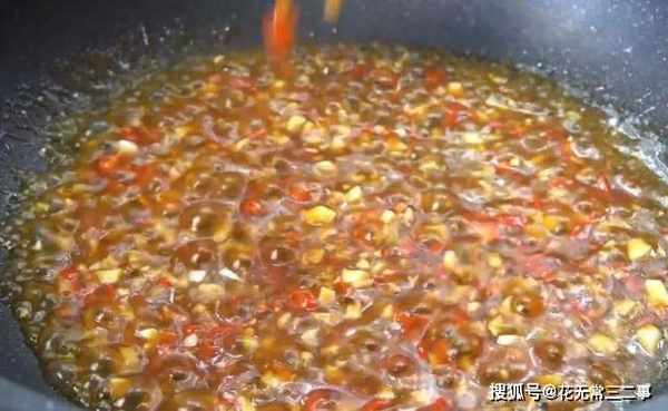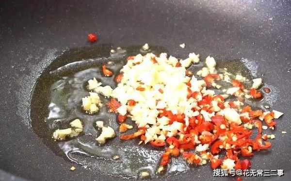 6、下面做个料汁,用大蒜、小米椒爆香。