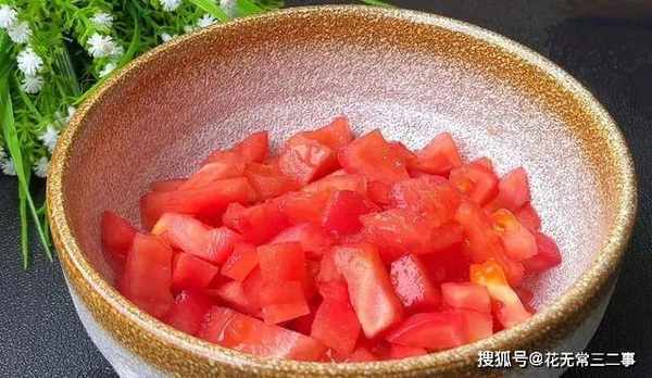 2、接着将番茄切碎备用。