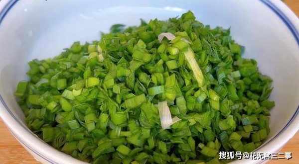 3、接着洗净韭菜,切碎备用。