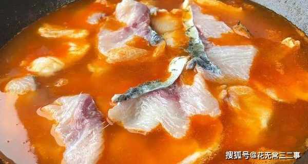 5、汤水煮沸后,放入鱼片,不要急着搅动,等待鱼片煮熟定型再拨动。