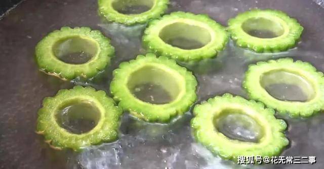 1、先将苦瓜去瓤,切圈备用。