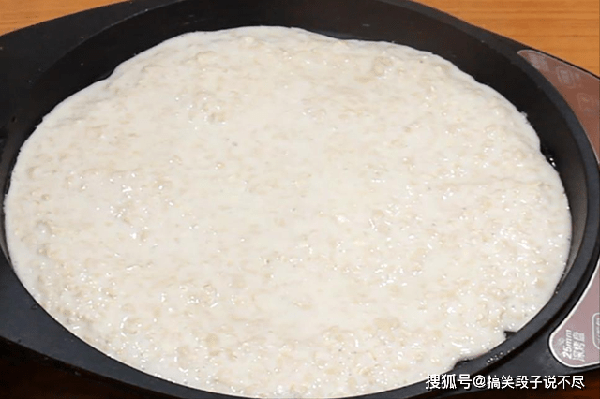 起锅开小火,均匀刷上植物油,油温五成热时把面糊倒入锅中,用勺子摊成薄厚均匀的圆形面饼,盖上锅盖烙2分钟。