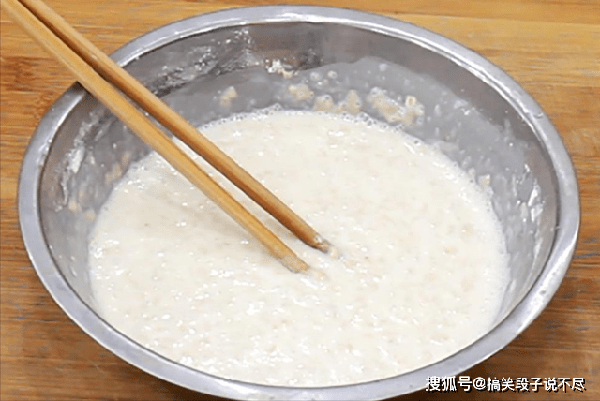 然后加入适量的开水,放入大米、顺着一个方向不停地搅拌,让大米均匀受热、快速糊化,同时防止糊锅