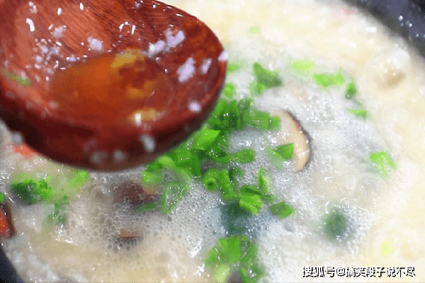 最后撒上葱花、淋上芝麻香油,浓郁粘稠、鲜香味十足的鲜虾粥就熬好了,每天早上喝一碗,全身舒服、暖暖和和。