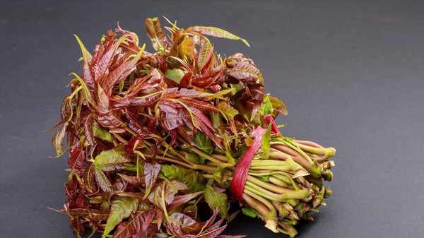 香椿是一种长在树上的蔬菜,是香椿树的嫩芽。惊蛰期间,香椿树冒出嫩芽,正是吃它的好时机,错过可要等一年。