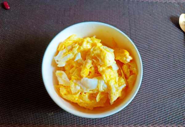 ③鸡蛋打入锅中,搅拌均匀。锅中滑油,倒入鸡蛋液。等底部凝固,快速翻炒几下就可以出锅。