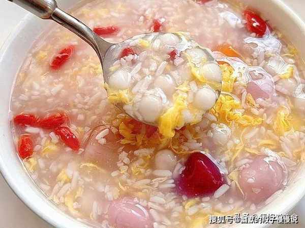 汤圆,芋圆,酒酿,枸杞子,鸡蛋,冰糖,淀粉水。