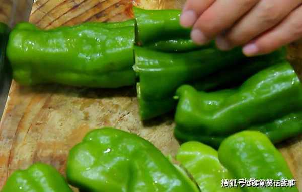 然后把肉馅塞到青椒中,塞到10分饱满,塞满了油炸的时候青椒才不容易烂掉。