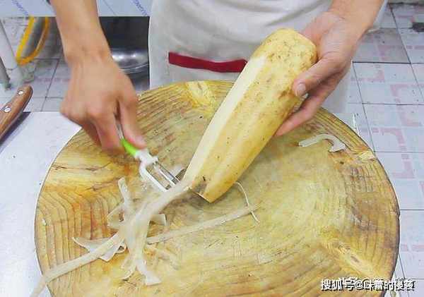 莲藕一节洗净以后去皮,清理干净后。