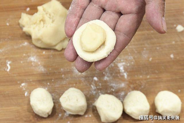 面粉200克,加入白糖5克、炼乳3克、植物油5克,用清水和成柔软的面团;另外准备面粉30克,加入植物油10克,和成和面团一样软的油面。把面团揉光滑、搓成长条,揪成大小均匀的面剂子,包入一小块油面,把开口收紧。