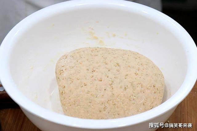 盆中放入面粉300克,加入酵母3克,用清水和成面团发酵2个小时。