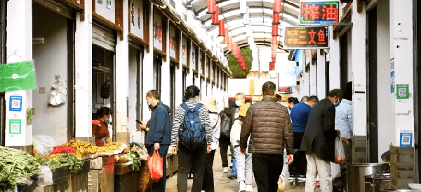 除此之外,东华农贸市场还是昆明主城区最大的农贸市场。据市场管理员李老师介绍,市场占地面积2.3万平方米,有800多户商户入驻,上千种产品,人流量最多的时候达到一天12万人次。