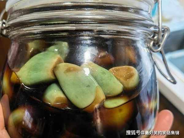 5、放置一周以后,蒜瓣会逐渐变绿,随着时间的推移,颜色会越发漂亮,建议浸泡两周以上,让味道充分渗透,味道会更好。