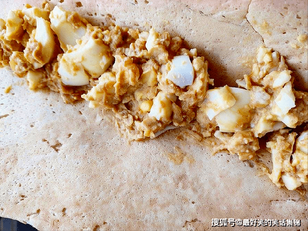 6、将蒜泥鸡蛋倒在煎饼里面,卷起来吃,这就是极具地方特色的吃法了,在临沂、东营、淄博、济宁、潍坊,经常能见到,当然,也不是整个山东都吃。