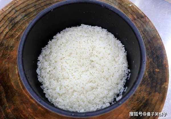2.准备适量的大米,多淘洗几遍把上面的灰尘和杂质洗干净,倒入电饭煲中把大米摊平备用。