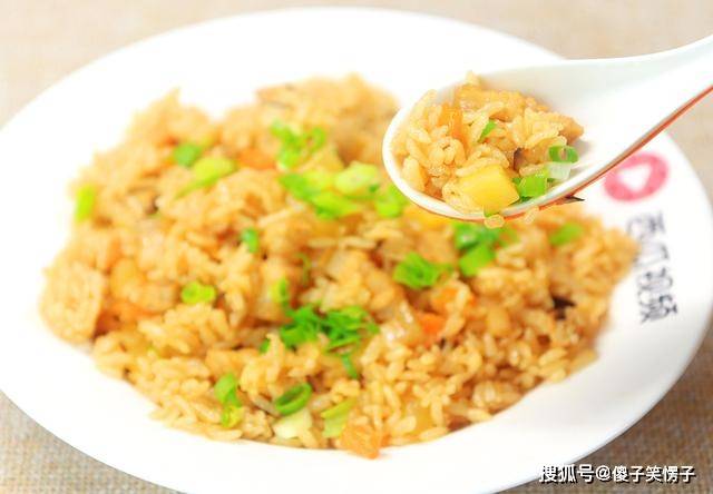 6.电煲锅跳停以后汤汁已经全部被吸收,米饭粒粒分明,拌匀以后就可以上桌了,这道鲜香美味的香菇五花肉焖饭就做好了。